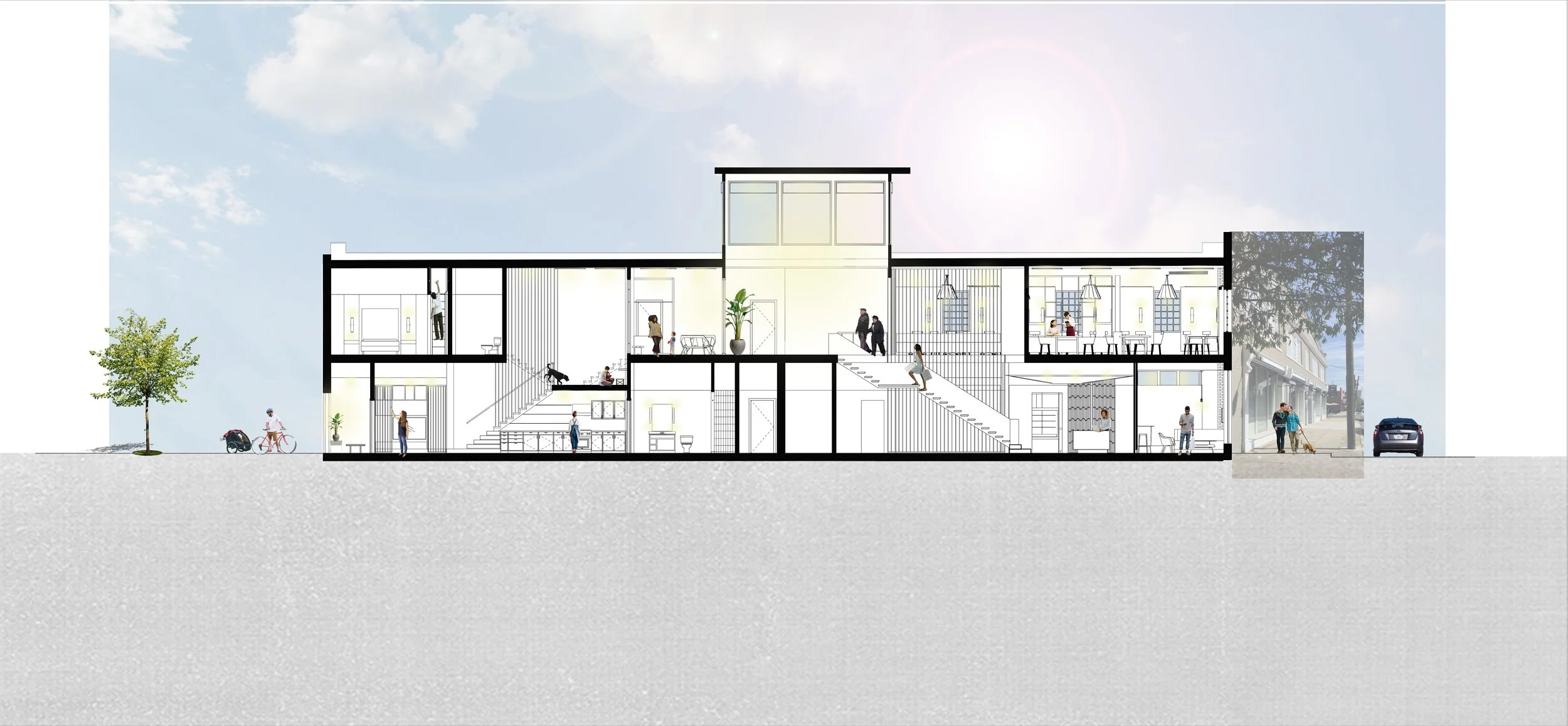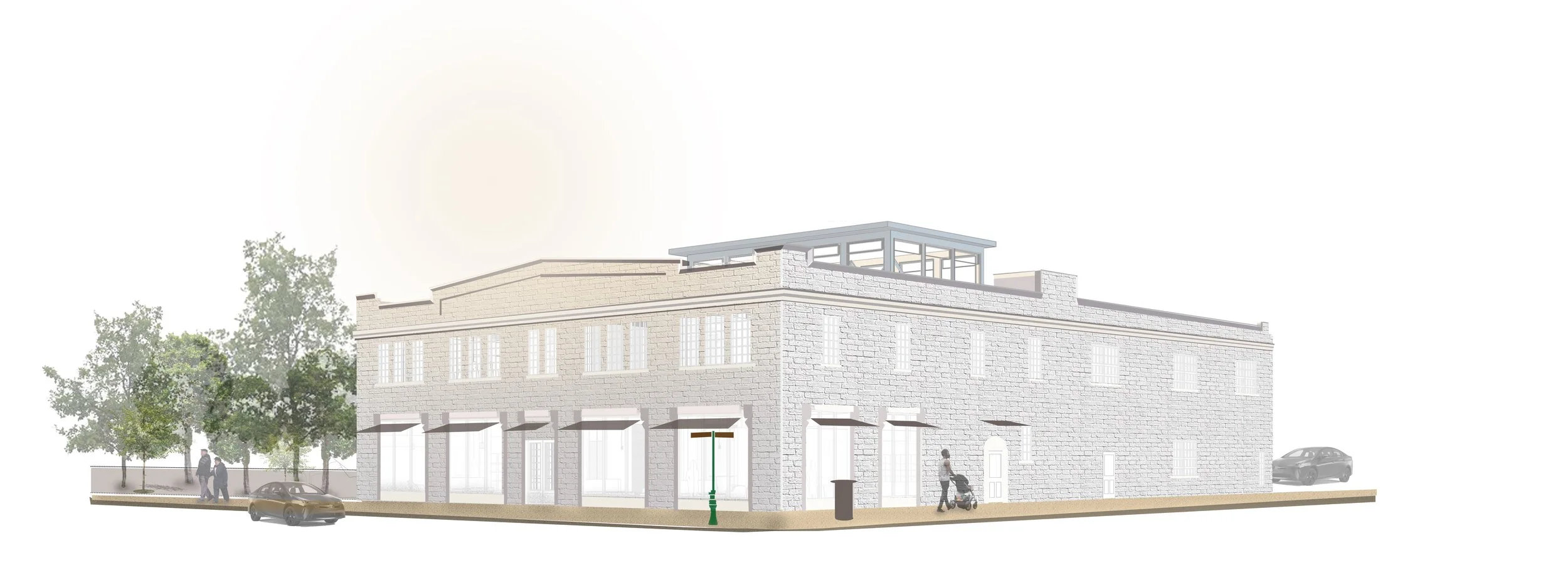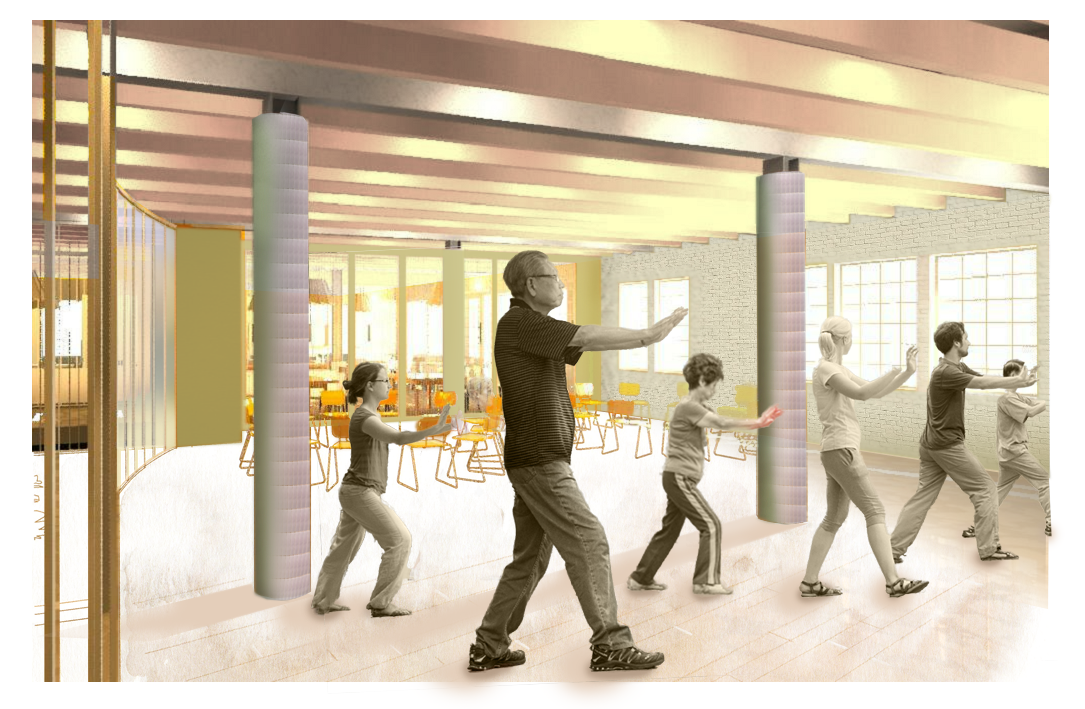 Can interior design help us live longer? This speculative project proposes a design for a micro-"Blue Zone" that could be used as a model for promoting increased life long well-being. This three-level adaptive reuse, mixed use commercial project features four apartments, a Japanese tea house and a tai chi studio, addressing vertical transitions, social spaces and outdoor relationships and encouraging residents and visitors to move throughout the day.